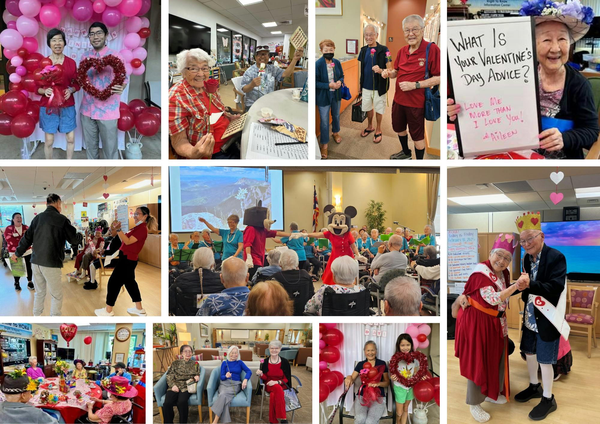The Arcadia Family of Companies was filled with love and appreciation on Valentine’s Day! 15 Craigside and Arcadia residents and Arcadia Adult Day Care Center clients were delighted to receive beautiful roses, courtesy of AARP’s Wish of a Lifetime. The Center hosted a special Valentine’s Day photo booth, where clients and families captured picture-perfect memories, and enjoyed a live performance by “Sing for Your Life.” The Sounds of Craigside presented a heartwarming Valentine’s Day program featuring love songs, with a special dance by Mickey and Minnie Mouse. At the 15 Craigside Health Care Center, residents danced to love songs with the Queen and King of Hearts and enjoyed strawberry float desserts. Hale Ola Kino by Arcadia held a Bingo tea party and offered some Valentine’s Day advice.