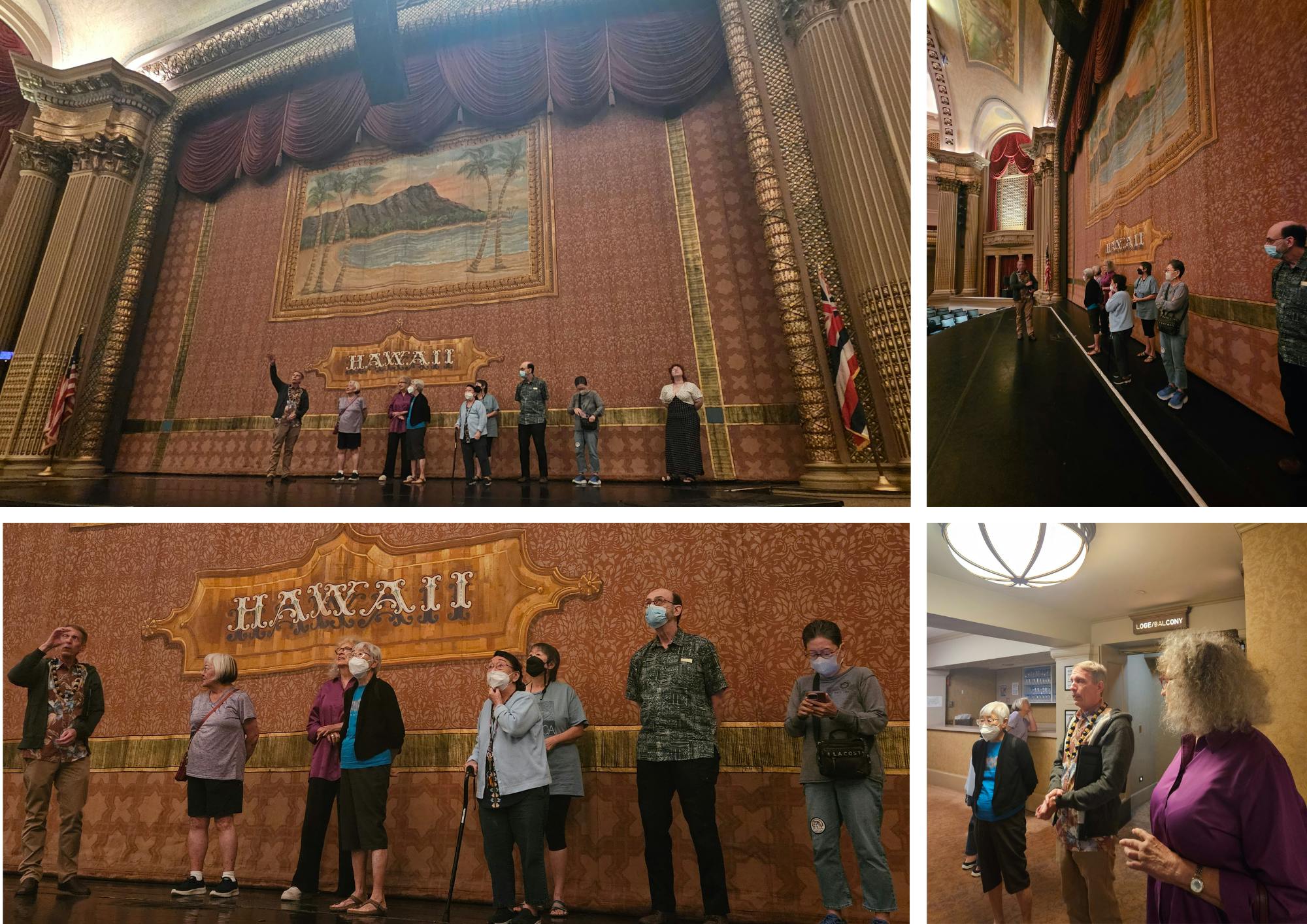 Arcadia residents and Arcadia At Home members visited the Hawaii Theatre. They took a tour of the historic theatre and learned about its founding, architecture, and changes it underwent through the ages, including the major restoration work in the early 1990s. At the end of the tour, attendees got up on stage to see what it’s like from a performer’s point of view.