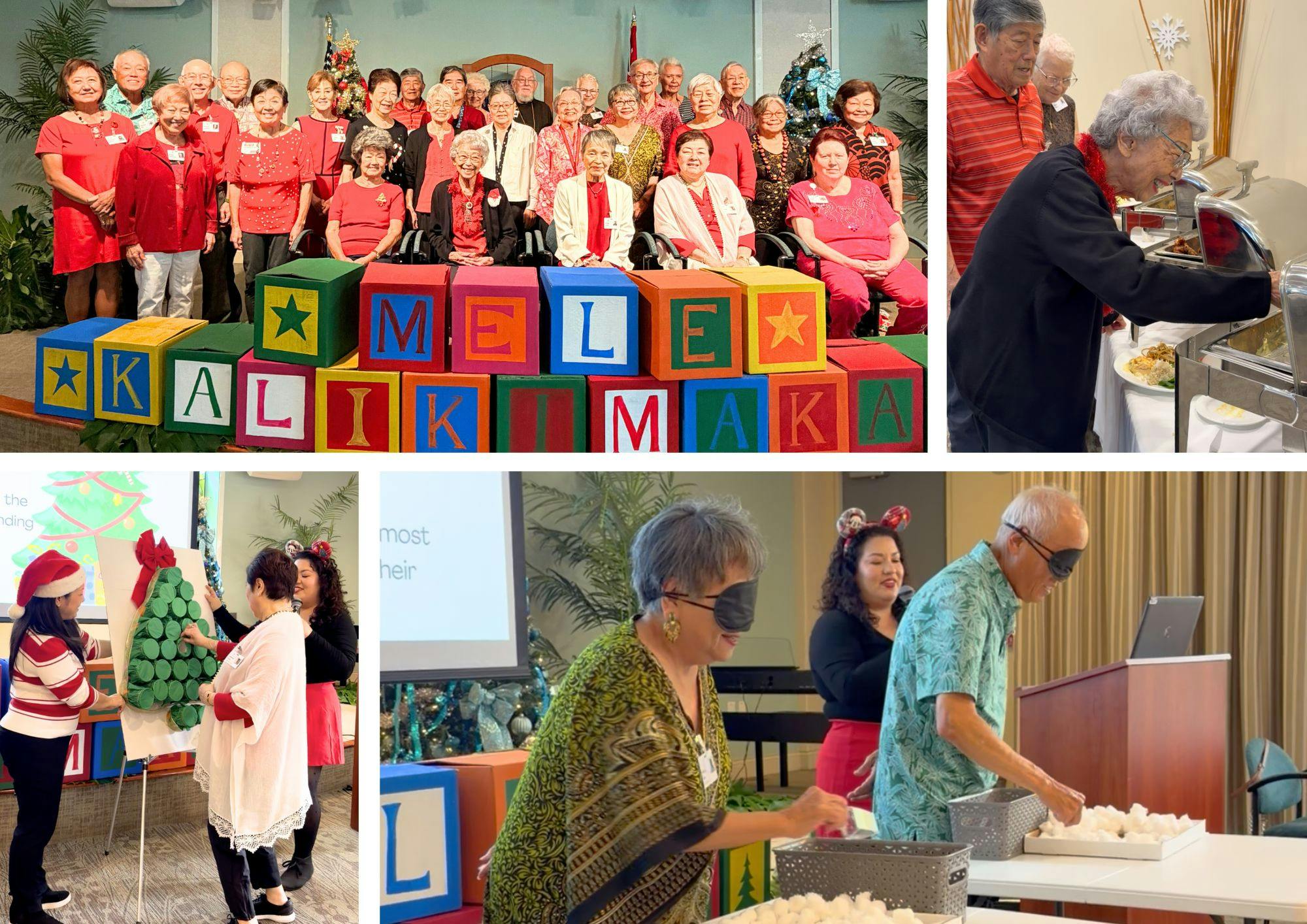 Mat’s Place celebrated “Christmas Vibes” this month with its signature free open bar, bringing holiday cheer to the Arcadia Dining Room. Residents enjoyed festive specials, including “Santa,” a classic red wine, along with specialty drinks inspired by Santa’s reindeer. A heartfelt mahalo to Arcadia resident Mr. Mat Sgan, creator of Mat’s Place, as he prepares for retirement. He passes the barkeep keys to Mr. Stan Sokoloski, who will keep Mat’s Place jumpin’ with mixologists Mr. Vincent Hee, Mr. John Tasato, and Mr. Kent Davis, and waitresses Mrs. Eva Kama and Mrs. Carole Iboshi.