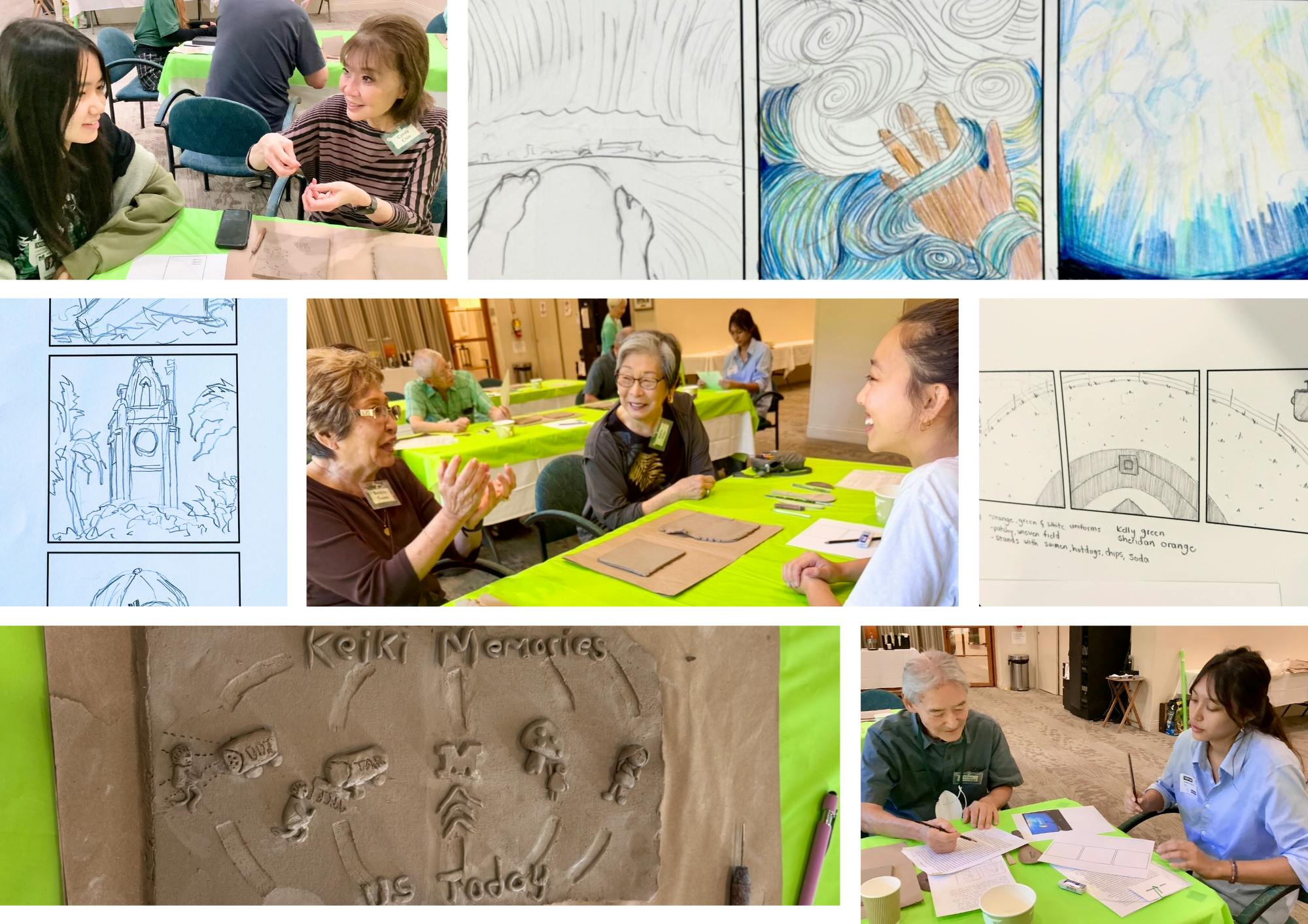 The Arcadia Arts and Crafts Committee collaborated with students from Mid-Pacific Institute for an Intergenerational Art Workshop held in Arcadia’s Chapel. Designed to encourage interaction, collaboration, and the exchange of knowledge between generations, the workshop was a success! Both residents and students agreed it ended far too soon. Together, participants created the beginnings of several artworks, including a 1950s-style bicycle in clay, sketches capturing a lifetime of struggle and love, and a three-dimensional piece titled “Keiki Memories.” Resident artwork from the workshop will be featured at the MPI Art Expo in late January and again during the Arcadia Arts and Crafts sponsored MPI Art Exhibition at Arcadia in April
