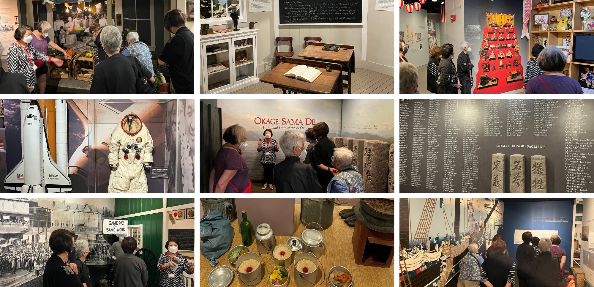 Arcadia residents visited the Japanese Cultural Center of Hawaii (JCCH) and privately toured the Okage Sama De: I am what I am because of you exhibit. From taking that first hesitant step off a boat onto a foreign land to having your country patriotism questioned after the bombing of Pearl Harbor, this is an experience of the multi-generational history of the Japanese in Hawaii. This exhibition first opened its doors on January 7, 1995 to recognize the first Japanese immigrants in our state. It features historical artifacts, wall murals, pictures, and displays. In addition, the JCCH and the Onizuka Memorial Committee partnered up to create the Ellison Onizuka remembrance. The collection contains photos, information, a space suit, a model of the Challenger Space Shuttle, and the state’s only moon rock available for public viewing. As residents walked through the exhibit, they were flooded with memories of growing up as they saw items they had in their homes, read Japanese words and phrases their families spoke, and viewed old pictures. After the tour, residents enjoyed lunch from the Japanese restaurant, Kokoro-tei.