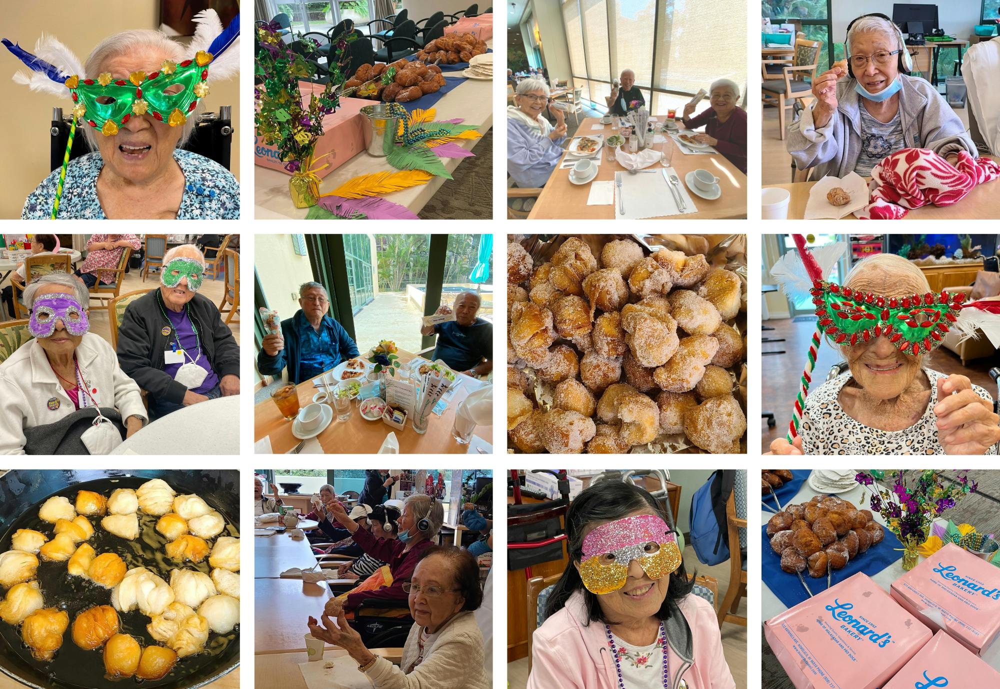 Festivities were plentiful across the Arcadia Family of Companies as we celebrated Mardi Gras, also known as Fat Tuesday. In Hawaii, eating malasadas on this day is a local tradition that the residents of Arcadia and 15 Craigside’s Health Care Center partook in. At 15 Craigside, residents enjoyed a twist on the tradition and satisfied their sweet tooth with an ice cream treat at lunch. Over at The Center, clients decorated masks and decked themselves out in their creations along with beads, bracelets and pins. The fun continued at Hale Ola Kino as residents embellished masks with glitter, feathers and gemstones. Everyone also learned Mardi Gras fun facts, listened to jazz music, and watched the parades going on in New Orleans.