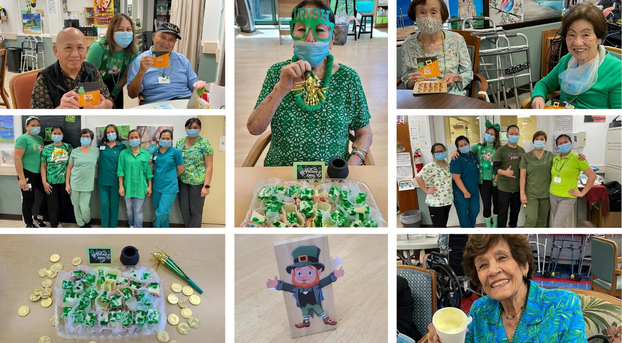 The Arcadia Family of Companies celebrated Saint Patrick’s Day with happiness, excitement, and spirit! The Arcadia Adult Day Care at Central Union Church spent the day participating in many fun festivities. Clients created adorable leprechaun crafts and chose their own lei and tattoos to wear. In addition, they were treated with a refreshing Saint Patrick’s Day float and took home a leprechaun hat filled with their favorite candies. Clients and employees had a wonderful time getting dressed up and spending time with one another. Residents in the Health Care Center at 15 Craigside played trivia games and enjoyed green confetti jello. A huge mahalo to the Activities teams for putting together such entertaining and lively programs for our residents and clients. It is so heartwarming to see all of the smiles, joy, and laughter within our family.