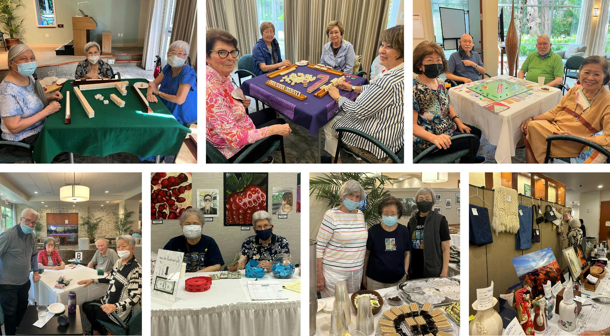 For a small donation, all were welcome to enjoy games, prizes and snacks. Games including bridge, mahjong, hanafuda and Monopoly were available to play along with a spread of treats to munch on. Residents and employees also tried their luck by purchasing a $1 raffle ticket for a chance to win $100! Congratulations to the one lucky resident and one lucky employee with the winning tickets. Everyone was also able to bid on an assortment of treasures such as bottles of wine, artwork, décor, quilts, purses, household items, and more at the silent auction.