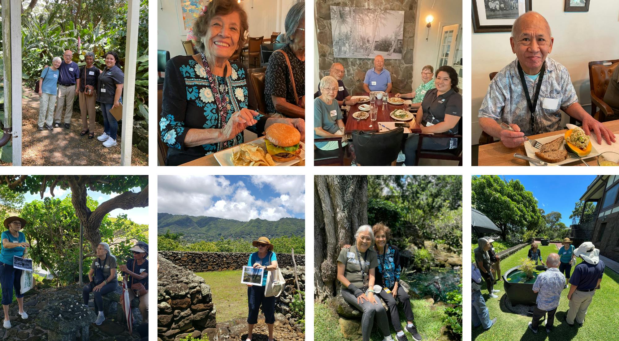 Arcadia At Home (AAH) members and Arcadia Adult Day Care Center clients came together for brunch at the Waioli Kitchen & Bake Shop and a tour of the Manoa Heritage Center (MHC). Originally named the Waioli Tea Room, the restaurant opened in 1922 and offered vocational training for orphans housed at the Salvation Army Girls Home in Manoa. Members and clients filled up on banana macadamia nut pancakes, avocado toast, short rib loco moco, breakfast sandwiches, and more.