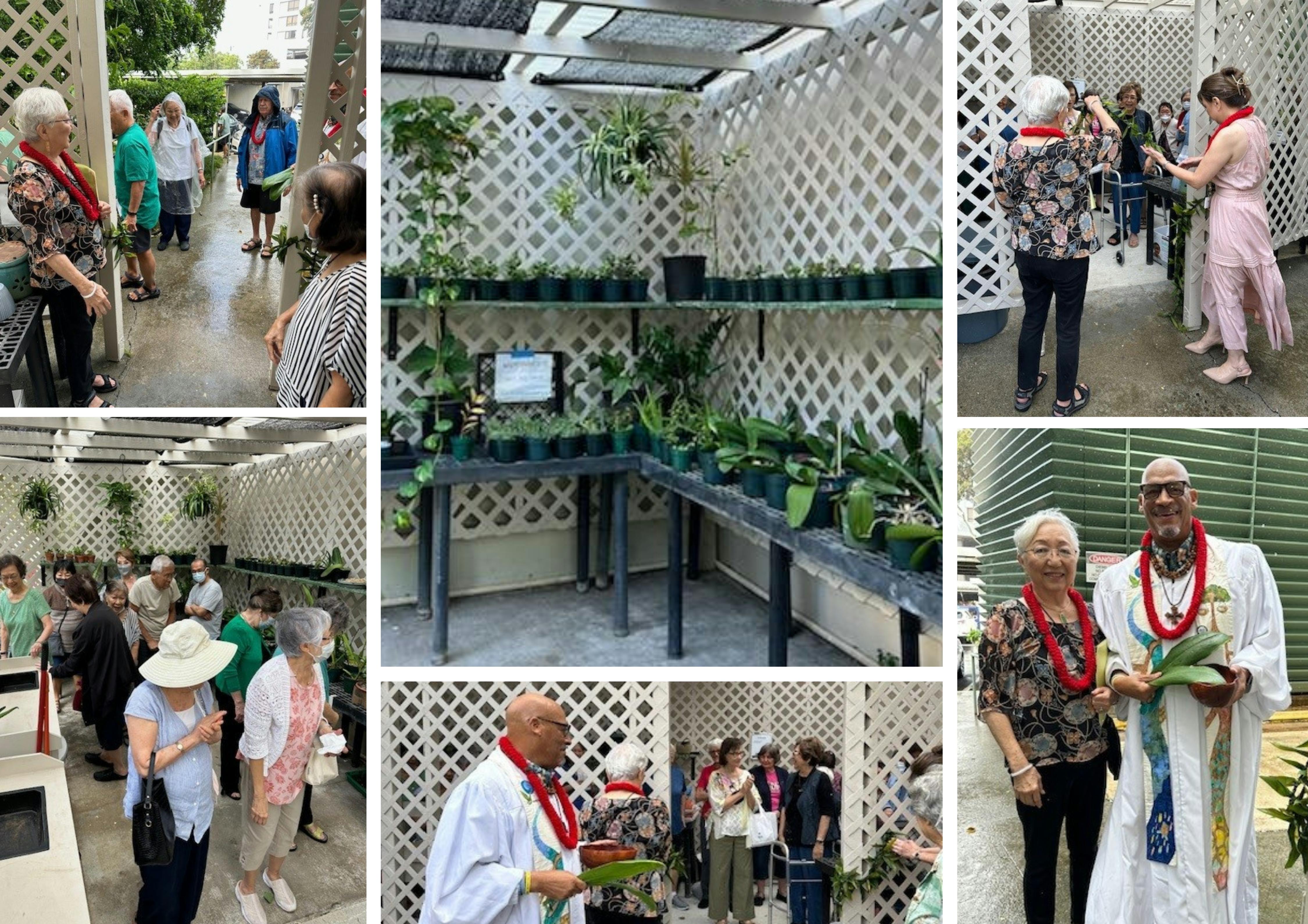 Hale Mea Kanu, Arcadia’s Greenhouse, is officially open! Arcadia Resident Association president Mr. Ed Kimsey, Arcadia COO Heidi Pliszka, and Rev. Dr. George Scott, who blessed the new structure, were key figures in the ceremony. After the dedication, residents gathered to enjoy refreshments and celebrated this special renovation to the community. The greenhouse, named Hale Mea Kanu, translates to “house of plants” in Hawaiian, and is designed to provide a nurturing environment for residents to grow their own fruits, vegetables, and flowers. This eco-friendly space not only enhances Arcadia’s green initiative, but also offers a hands-on opportunity for residents to engage with nature, cultivate new skills, and enjoy fresh produce throughout the year. With the grand opening of Hale Mea Kanu, Arcadia continues to nurture its commitment to sustainability, community-building, and promoting a healthy lifestyle. This new place will undoubtedly play a central role in enriching the lives of all who visit and participate!