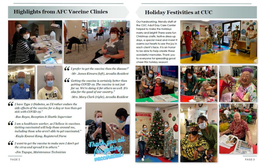 “We received numerous compliments about the efficiency and calmness of the clinics at both 15 Craigside and Arcadia. I am so proud and humbled by the collaboration, teamwork, support and pure grit exhibited by everyone in putting on these clinics. Mahalo!” - Suzie Schulberg, President & CEO
