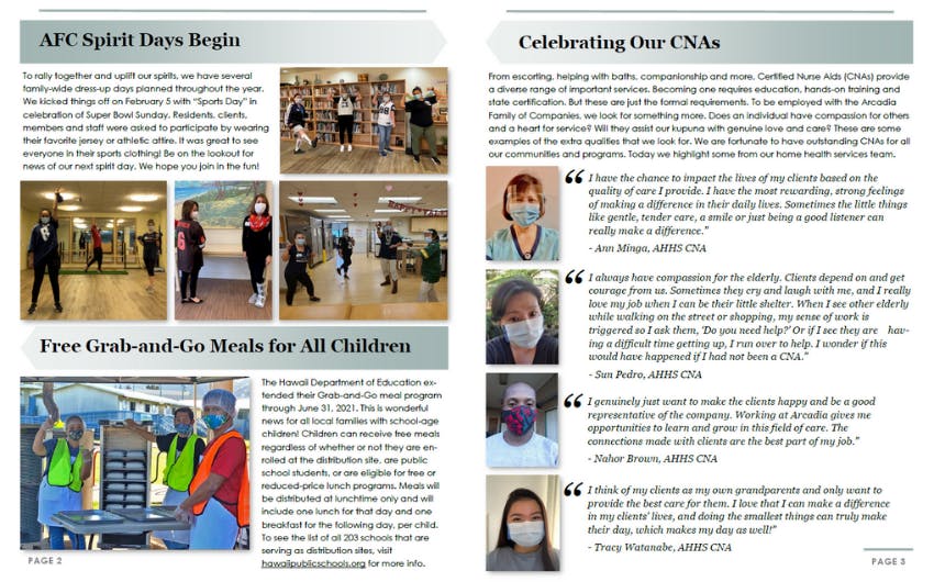 “The AFC’s second round of COVID-19 Vaccination Clinics were successful and ran smoothly. However, the side effects with the second dose were definitely more severe for employees and residents. Staff have called out sick, but we’ve been able to fill shifts with many of you rising to the occasion in typical AFC fashion. ONE TEAM!” - Suzie Schulberg, President & CEO
