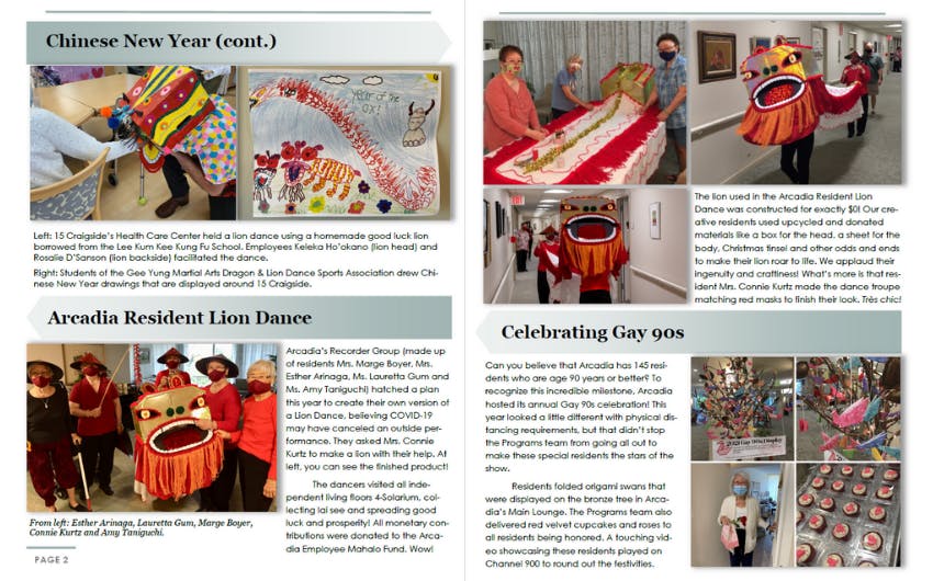 The Lunar New Year fell on Friday, February 12th this year with activities befitting of a new year’s celebration. Residents and staff at both communities enjoyed Lion Dances, a traditional dance in Chinese culture in which performers bring a lion in costume to life. It’s said that the lion brings good luck and fortune.