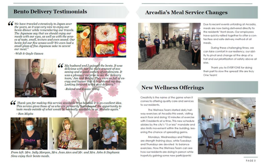 “If there is anything this pandemic has shown us over the last six months is that things can change in the blink of an eye. Our priority is to ensure the health and safety of all who live and work at Arcadia. Thank you for your understanding and helping us keep everyone safe.” - Suzie Schulberg, President & CEO
