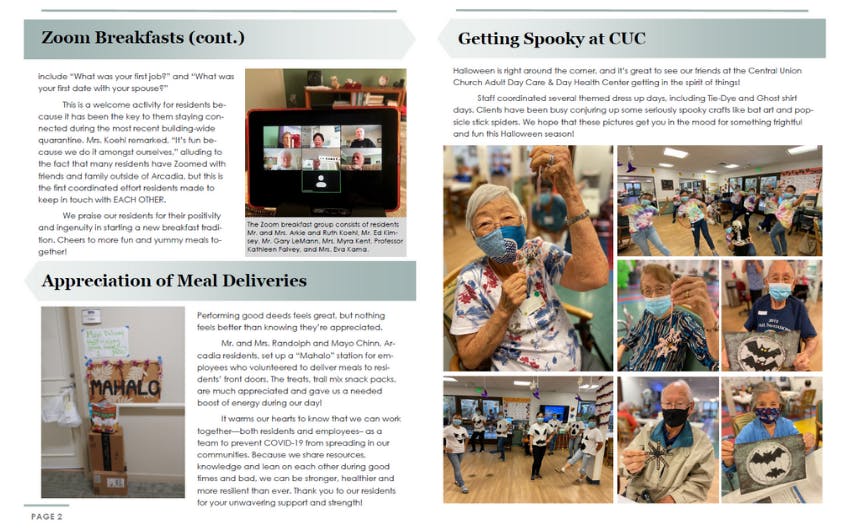 With COVID-19 changing the way we live and work, it’s no surprise that it has upended many of our social and cultural traditions. At Arcadia, residents are getting creative on how to socialize, even during times of isolation.