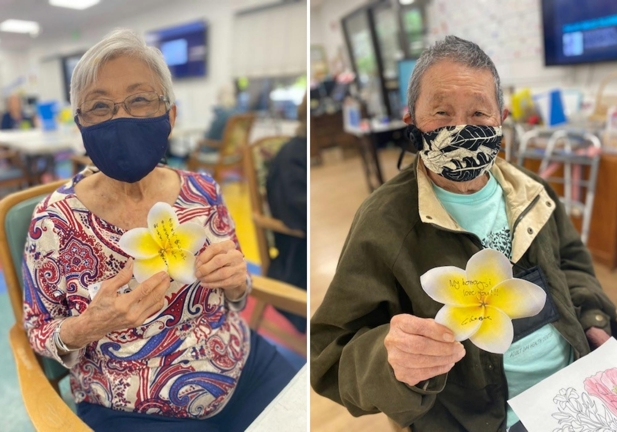 In honor of May Day, residents, clients and members were invited to send messages of aloha across our family. Stations were set up in the various communities with flower cards for kupuna to write messages of aloha to share with others. Arcadia-created messages were shared with our 15 Craigside residents and Home and Community-Based Services Clients and Members, and those written by them shared with everyone as well.